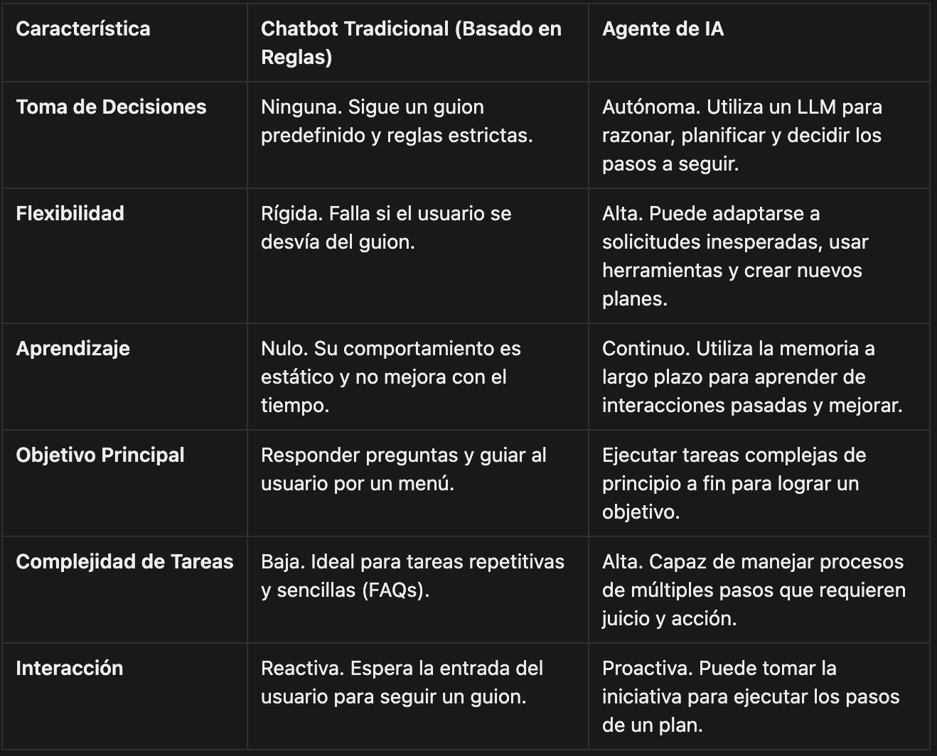 Tabla Comparativa: Agente de IA vs. Chatbot Tradicional