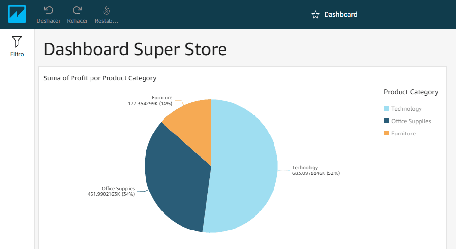 El último paso es crear el dashboard, donde en una misma vista insertamos los gráficos creados en los pasos anteriores, dependiendo de la aplicación que se esté ocupando, serán acciones que se permita realizar en el dashboard. Algunas aplicaciones permiten crear filtros, por ejemplo, un filtro por año, entonces si el usuario selecciona el año 2019, todos los gráficos cambian sus datos a ese año. En el caso que cambie al año 2020, el usuario verá los datos correspondientes a ese año y así sucesivamente. También se puede elegir qué gráficos cambian y cuáles no, ya que en ocasiones no queremos que todos los gráficos cambien, por lo que cuando se crea la acción, se elige cuál o cuáles son los gráficos que seguirán al filtro.