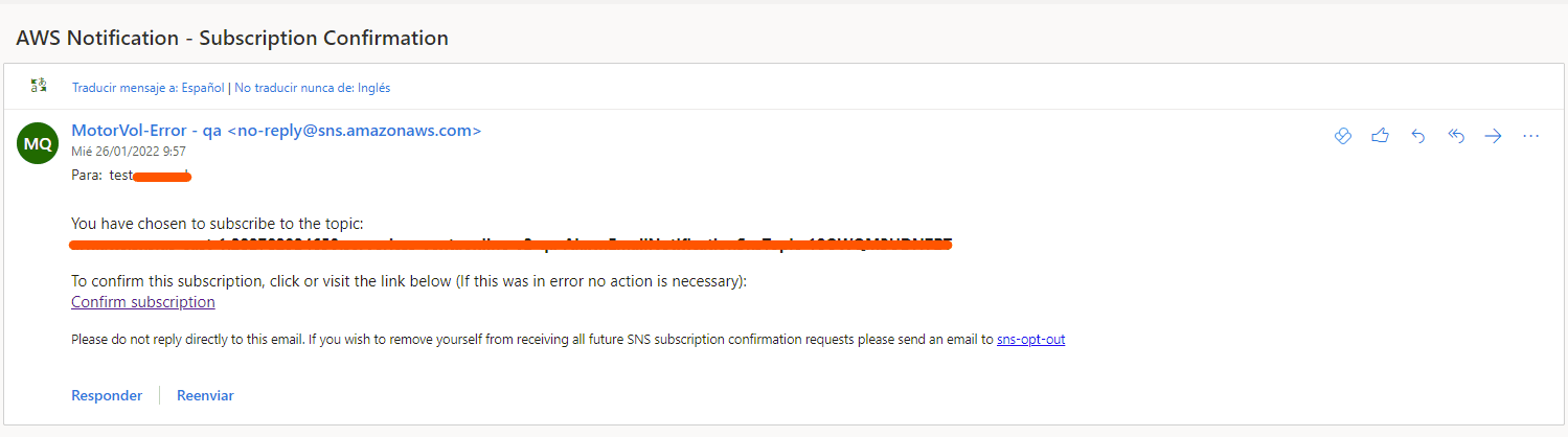 Una vez localizada asegurate que el correo que agregaste está en la sección Suscripciones. Pero para recibir las notificaciones debes subscribirte desde un correo que te llegará similar a este: