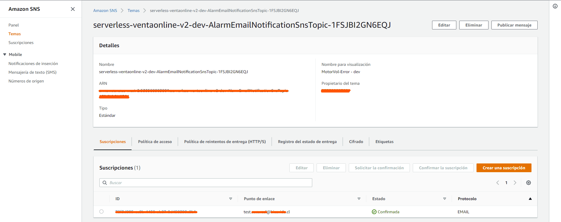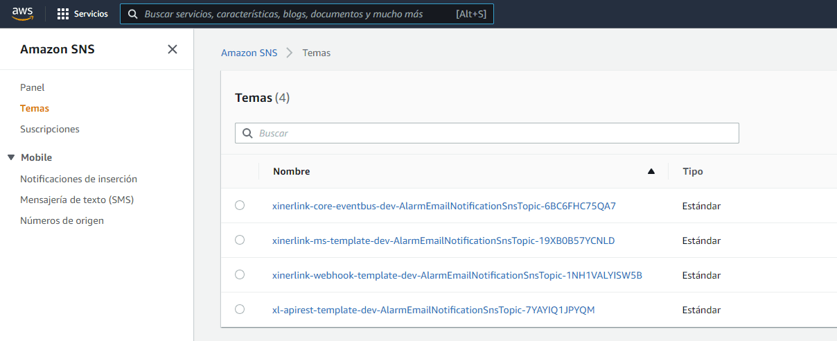 Por ultimo, estas alarmas crean e integran el servicio SNS, lo que te permite, agregar correos en los que recibiremos las notificaciones de alarma, para ello debes visualizarlos en la consola.