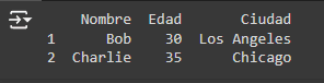 2. Filtrado de Filas: Puedes filtrar filas basadas en condiciones lógicas. Por ejemplo, para seleccionar todas las filas donde la edad es mayor que 28: