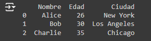 3. Ordenamiento de Datos: Para ordenar los datos por una columna, puedes usar sort_values(). Por ejemplo, ordenar por 'Edad':